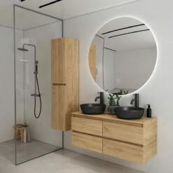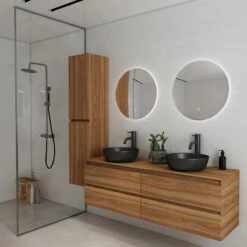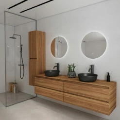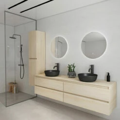 Fontana Proma Badkamermeubel 200cm Met Zwarte Waskommen En LED Spiegels Beach Eiken