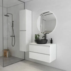 Fontana Proma Badkamermeubel 80cm Met Zwarte Waskom En LED Spiegel Mat Wit