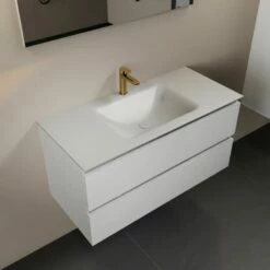 Mondiaz Aivy Badmeubel 100cm Talc Met Wastafel Solid Surface Urban Midden Zonder Kraangat En Spiegel
