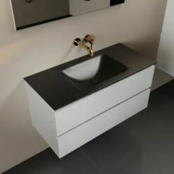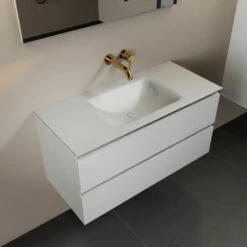 Mondiaz Aivy Badmeubel 100cm Talc Met Wastafel Solid Surface Urban Midden 1 Kraangat En Spiegel