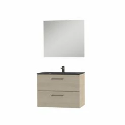 Tiger Studio Badkamermeubel Incl Spiegel En Zwarte Wastafel 80cm Naturel Eiken