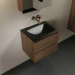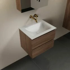 Mondiaz Aivy Badmeubel 60cm Mocha Met Wastafel Solid Surface Urban Midden 1 Kraangat En Spiegelkast