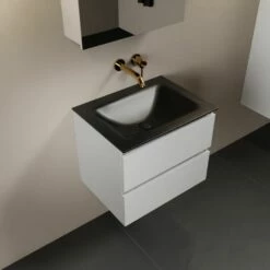 Mondiaz Aivy Badmeubel 60cm Chai Met Wastafel Solid Surface Urban Midden 1 Kraangat En Spiegelkast