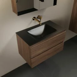 Mondiaz Aivy Badmeubel 80cm Mocha Met Wastafel Solid Surface Urban Midden 1 Kraangat En Spiegelkast