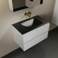 Mondiaz Aivy Badmeubel 80cm Urban Met Wastafel Solid Surface Urban Midden 1 Kraangat En Spiegelkast