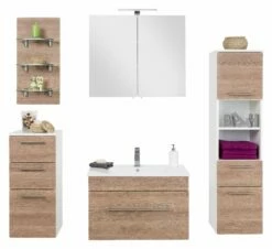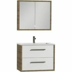 Tiger Boston Badmeubel Met Spiegelkast En Witte Wastafel 80cm Chalet Eiken