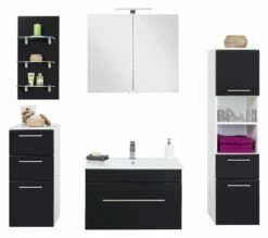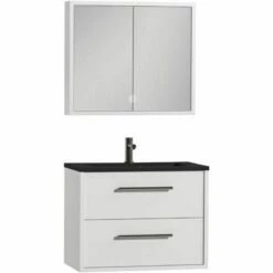 Tiger Boston Badmeubel Met Spiegelkast En Zwarte Wastafel 80cm Wit