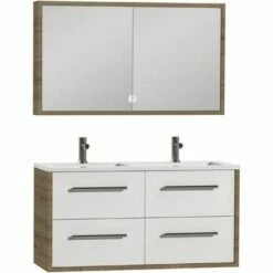 Tiger Boston Badmeubel Met Spiegelkast En Witte Wastafel 120cm Chalet Eiken