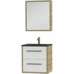 Tiger Boston Badmeubel Met Spiegelkast En Zwarte Wastafel 60cm Chalet Eiken
