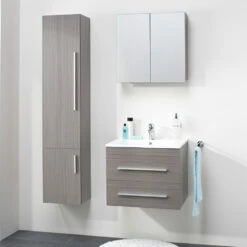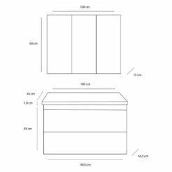 Differnz Somero Badmeubelset 80cm Spiegelkast Hoogglans Wit Beton