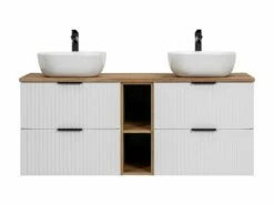 Comad Adele White Badkamermeubel 140cm Wit Mat Met 2 Waskommen En Topblad Eiken