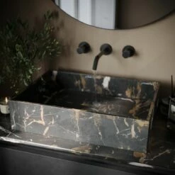 Fontana Portoro Gold Marmer Badmeubel 100cm Mat Zwart Met Ribbelfront En Toppaneel Met Ronde Waskom