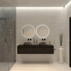SaniGoods Alvares Badmeubel 180cm Eiken 2 Lades Castle Brown Met Rivierstenen Waskommen