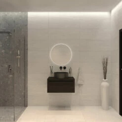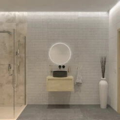 SaniGoods Alvares Badmeubel 70cm Eiken Charcoal Met Rivierstenen Waskom