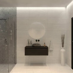 SaniGoods Alvares Badmeubel 80cm Eiken Ashgrey Met Zwarte Waskom