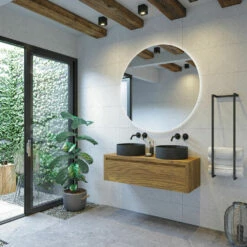 SaniGoods Alvares Badmeubel 120cm Eiken Corn Silk Met Zwarte Waskommen