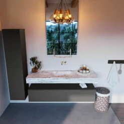 Mondiaz Alan DLux Badmeubel 150cm Oro 1 Lade Met Wastafel Opalo Rechts 1 Kraangat