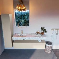 Mondiaz Alan DLux Badmeubel 150cm Linen 1 Lade Met Wastafel Glace Links 1 Kraangat