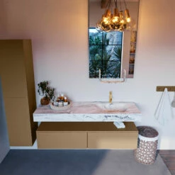 Mondiaz Alan DLux Badmeubel 150cm Oro 2 Lades Met Wastafel Glace Rechts 1 Kraangat