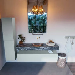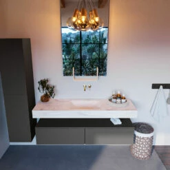 Mondiaz Alan DLux Badmeubel 150cm Oro 2 Lades Met Wastafel Lava Rechts 1 Kraangat