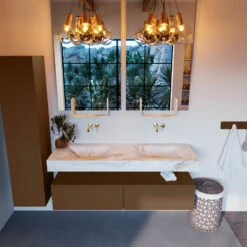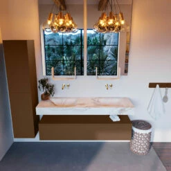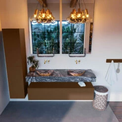 Mondiaz Alan DLux Badmeubel 150cm Rust 1 Lade Met Wastafel Lava Dubbel Zonder Kraangat