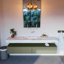 Mondiaz Alan DLux Badmeubel 200cm Army 2 Lades Met Wastafel Glace Midden Zonder Kraangat