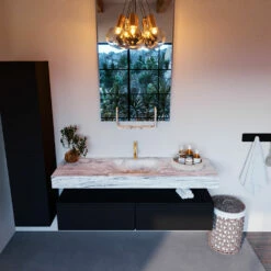 Mondiaz Alan DLux Badmeubel 150cm Urban 2 Lades Met Wastafel Glace Midden 1 Kraangat