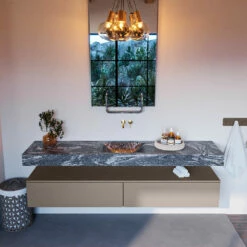 Mondiaz Alan DLux Badmeubel 200cm Smoke 2 Lades Met Wastafel Lava Rechts Zonder Kraangat