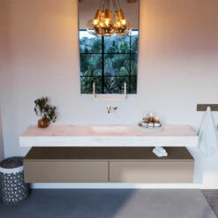 Mondiaz Alan DLux Badmeubel 200cm Linen 2 Lades Met Wastafel Frappe Dubbel Zonder Kraangat