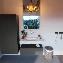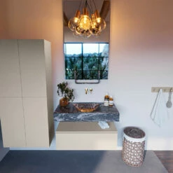 Mondiaz Alan DLux Badmeubel 90cm Linen 1 Lade Met Wastafel Lava Midden 1 Kraangat