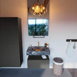 Mondiaz Alan DLux Badmeubel 70cm Dark Grey 1 Lade Met Wastafel Lava Midden 1 Kraangat
