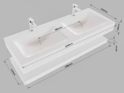 Mondiaz Alan DLux Planchet 130cm Met Wastafel Dubbel 2 Kraangaten Lava