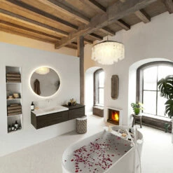 Mondiaz Alan DLux Badmeubel 90cm Washed Oak 1 Lade Met Wastafel Ostra Midden 1 Kraangat