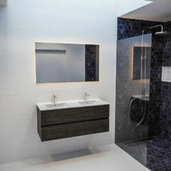 Mondiaz Vica 120cm Badmeubel Dark Brown 2 Lades Wastafel Denia Dubbel 2 Kraangaten