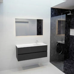 Mondiaz Vica 120cm Badmeubel Dark Grey 2 Lades Wastafel Cloud Midden 1 Kraangat