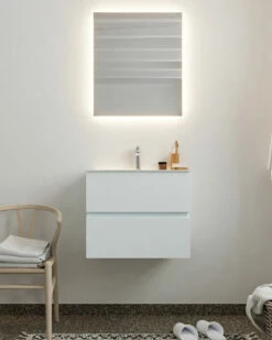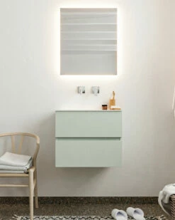Mondiaz Vica 60cm Badmeubel Greey 2 Lades Wastafel Cloud Midden Zonder Kraangat