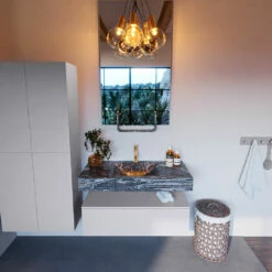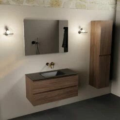 Mondiaz Alan DLux Badmeubel 100cm Cale 1 Lade Met Wastafel Lava Midden 1 Kraangat