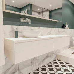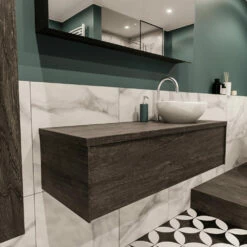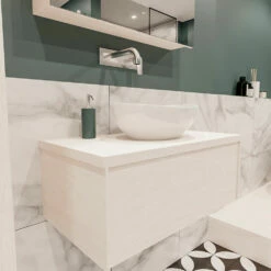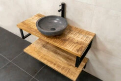 MD Interior Woodz Mangohouten Badkamermeubel 80cm Met Hardstenen Waskom