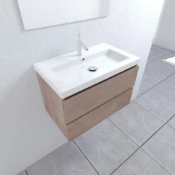 Mueller Salvador Badkamermeubel Houtnerf Grijs 80cm 1 Kraangat
