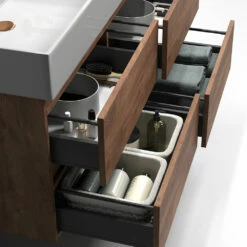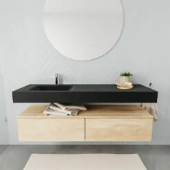 Zaro ALAN Vrijhangende Wastafel 150cm Met Wasbak Dubbel En Onderkast In Kleur Zwart Mat 1 Lade(s)