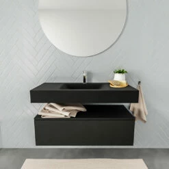 Sanituba Nature Badmeubel 80cm Mat Zwart Met Wastafel Foggia Glans Wit 1 Kraangat