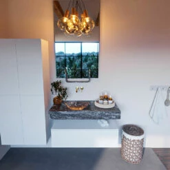 Mondiaz Alan DLux Badmeubel 100cm Smoke 1 Lade Met Wastafel Ostra Midden 1 Kraangat