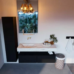 Mondiaz Alan DLux Badmeubel 130cm Urban 2 Lades Met Wastafel Frappe Links Zonder Kraangat