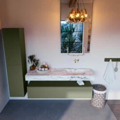 Mondiaz Alan DLux Badmeubel 150cm Army 1 Lade Met Wastafel Glace Rechts Zonder Kraangat