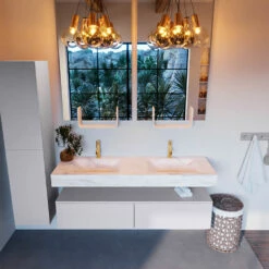 Mondiaz Alan DLux Badmeubel 150cm Cale 2 Lades Met Wastafel Ostra Dubbel 2 Kraangaten