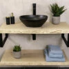 Let op: Deze foto is slechts een sfeerfoto. Het meubel komt dus exclusief de spiegel en de kranen. Mooie accessoires die aan het meubel toegevoegd kunnen worden, zijn te vinden onder de toebehoren.