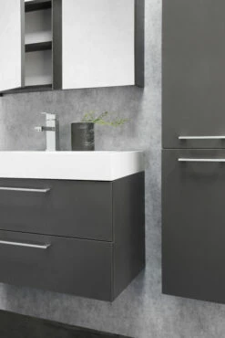Een badmeubel met een tijdloos design is de Differnz badmeubel uit de serie Somero. In de set zit een badkamermeubel, een wastafel en een spiegelkast. Het badmeubel heeft een breedte 60cm. Perfect voor in een wat kleinere badkamer. De wastafel is gemaakt van kunststeen, een materiaal dat onderhoudsvrij is en dankzij de kleur ook tijdloos is.Â