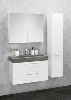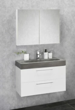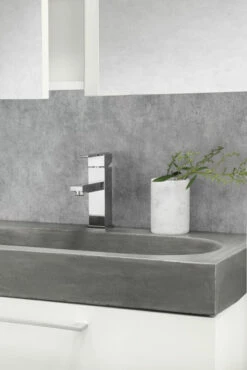 Een badmeubel met een tijdloos design is de Differnz badmeubel uit de serie Somero. In de set zit een badkamermeubel, een wastafel en een spiegelkast. Het badmeubel heeft een breedte 60cm. Perfect voor in een wat kleinere badkamer. De wastafel is gemaakt van kunststeen, een materiaal dat onderhoudsvrij is en dankzij de kleur ook tijdloos is.Â