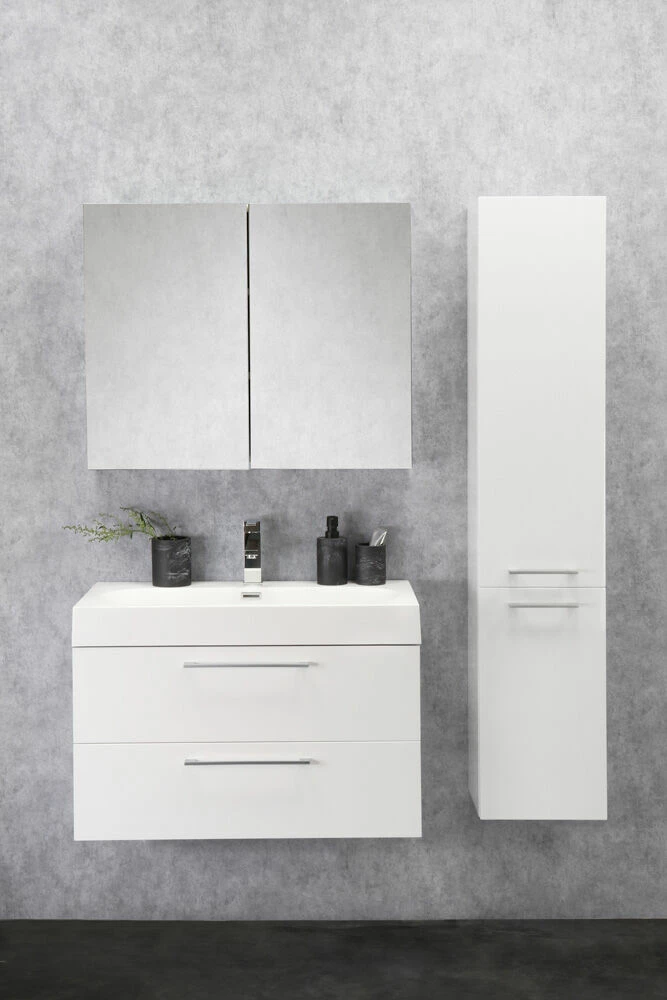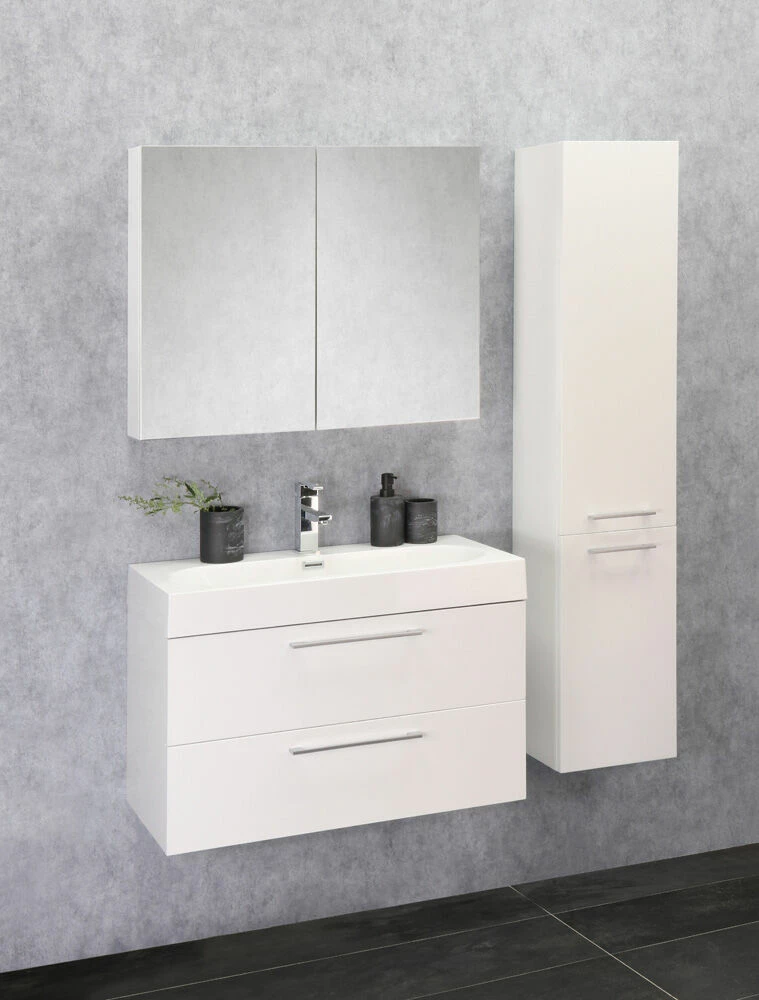 Een badmeubel met een tijdloos design is de Differnz badmeubel uit de serie Somero. In de set zit een badkamermeubel, een wastafel en een spiegelkast. Het badmeubel heeft een breedte 60cm. Perfect voor in een wat kleinere badkamer. De wastafel is gemaakt van kunststeen, een materiaal dat onderhoudsvrij is en dankzij de kleur ook tijdloos is.Â