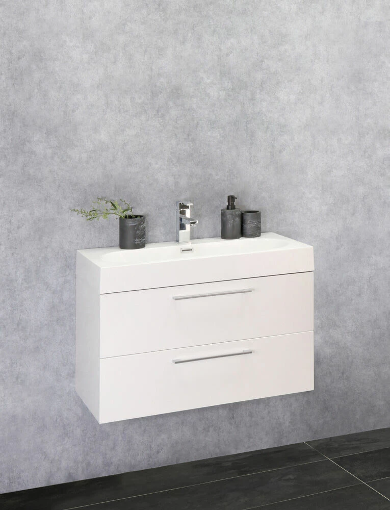 De wastafel heeft een kraangat en een overloop. Om het badmeubel compleet te maken shop je een wastafelkraan, clickwaste en sifon erbij. Verliefd op dit meubel, maar wil je ‘m liever in een andere kleur? Hiernaast vind je de andere kleuren en afmetingen.